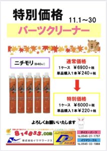 7月に引き続き、11月もキャンペーン商品は、大人気商品!パーツクリーナーになります!